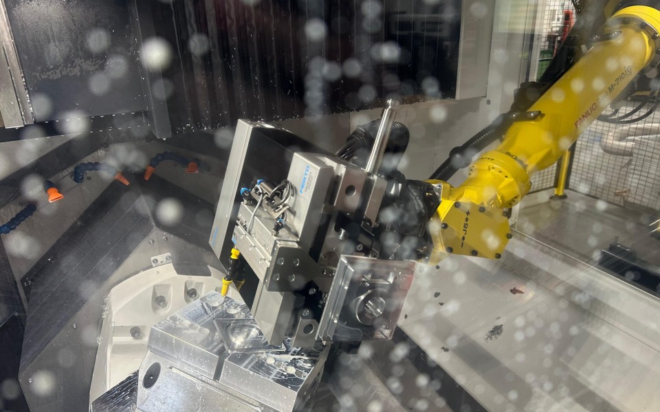 Dit bewerkingscentrum is voorzien van een Cellro Xcelerate X35-70 robotcel. Deze schakelt automatisch tussen verschillende producten en wisselt zelfstandig de opspanmiddelen. Dankzij de grijper met grote slag kunnen diverse productafmetingen volledig automatisch worden verwerkt. Het resultaat? Meer capaciteit, betrouwbare leveringen en 24/7 productie – inclusief ’s nachts en in het weekend. Deze robotcel is eind 2025 in volledig in de productie opgenomen.
